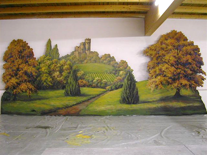 Fliegfisch-Leistungen: Mitarbeit Bühnenmalerei/ Fussbodenmalerei /Kunstmalerei / Dekomalerei