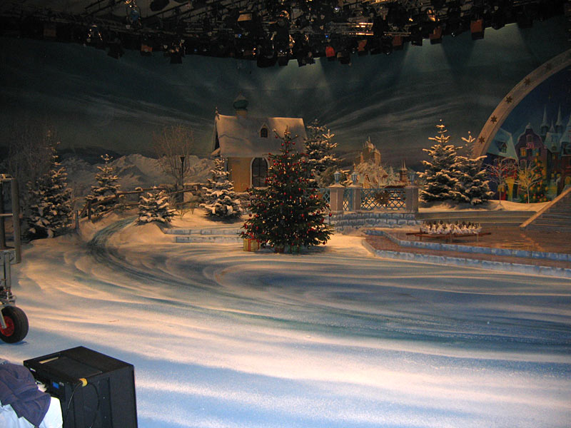 Bevor die Show über die Mattscheibe flimmert, wird hinter den Kulissen emsig gearbeitet. Auch der Fußboden und die angrenzenden Flächen werden jedes Mal neu gemalt.